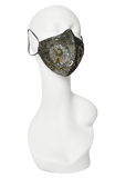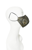 This item is made of two layers of non-stretch beautiful lurex brocade pre-washed serve as self and soft cotton lining with 2 extra layers of thick canvas cotton in between for extra filtering and extra room to breathe. The color-coordinated elastic straps wrap around the ear rather than the head for comfort and minimum disruption to the face and adjustable plastic nose bridge.